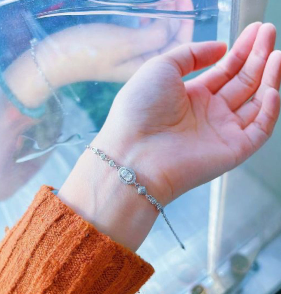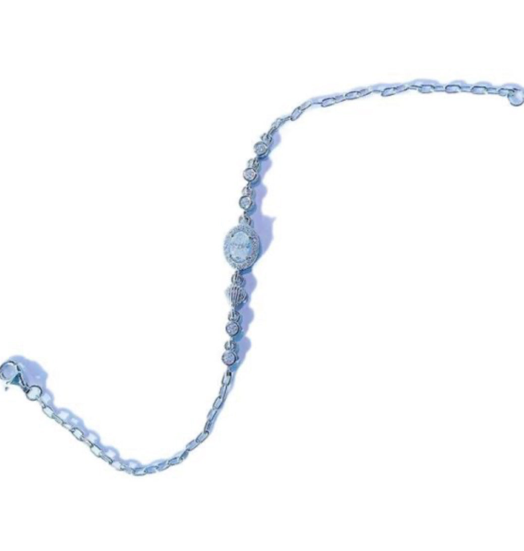 Hot-Selling S925 Sterling Silver 6*4 Egg Shape + Shell Bracelet Fashionable Seven Stone Round Bag Diamond Mossanite